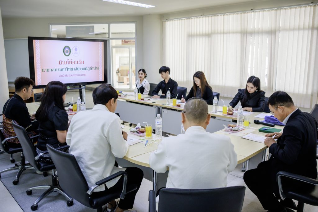 เมื่อวันที่ 26 กุมภาพันธ์ 2569 ศ.ดร.วิทยา จันทร์ศิลา นายกสภามหาวิทยาลัยราชภัฏลำปาง พร้อมด้วย รศ.ดร.ปริเยศ สิทธิสรวง รองอธิการบดีฝ่ายบริหาร ตรวจเยี่ยมและรับฟังการดำเนินงานของสำนักศิลปะและวัฒนธรรม ณ สำนักศิลปะและวัฒนธรรม มหาวิทยาลัยราชภัฏลำปาง โดยมี ผศ.เจษฎา ทองสุข ผู้อำนวยการสำนักศิลปะและวัฒนธรรม พร้อมด้วย อ.สุทธิมั่น ปิยะโกศล อ.ดร.เยาวลักษณ์ งามแสนโรจน์ รองผู้อำนวยการสำนักศิลปะและวัฒนธรรม น.ส.ธิดารัตน์ ไชยยาสืบ เจ้าหน้าที่บริหารงานทั่วไป ชำนาญการ ปฏิบัติหน้าที่ในตำแหน่งหัวหน้างานบริหารทั่วไป สำนักงานผู้อำนวยการสำนักศิลปะและวัฒนธรรม และบุคลากร ให้การต้อนรับและนำเสนอผลการดำเนินงานของสำนักศิลปะและวัฒนธรรม ระหว่างปีงบประมาณ พ.ศ. 2568 ถึงปัจจุบัน