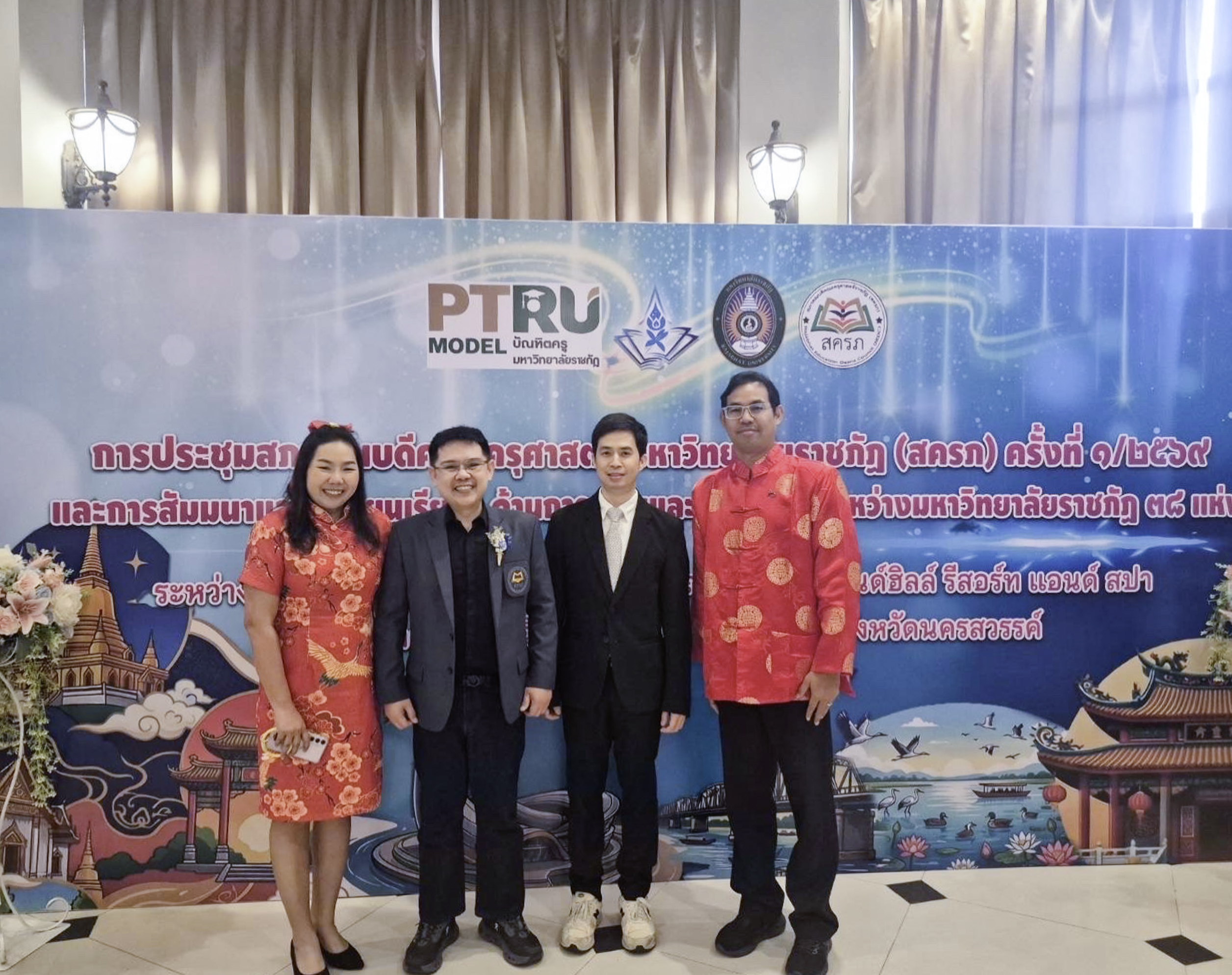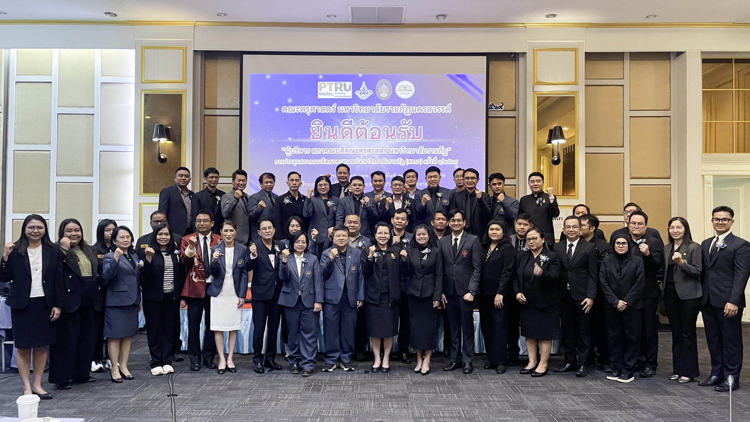 รศ.ดร.ฟิสิกส์ ฌอณ บัวกนก คณบดีคณะครุศาสตร์ มหาวิทยาลัยราชภัฏลำปาง พร้อมด้วย รศ.ดร.พงศ์วัชร ฟองกันทา ผู้ช่วยคณบดีฝ่ายวิจัย นวัตกรรม และวิเทศสัมพันธ์ เข้าร่วมการประชุมสภาคณบดีคณะครุศาสตร์ มหาวิทยาลัยราชภัฏ 38 แห่ง เมื่อวันที่ 25–26 กุมภาพันธ์ 2569 ณ โรงแรมแกรนด์ฮิล รีสอร์ท แอนด์สปา จังหวัดนครสวรรค์ โดย ผศ.ดร.อรพรรณ ตู้จินดา ประธานสภาคณบดีคณะครุศาสตร์/ศึกษาศาสตร์แห่งประเทศไทย เป็นประธานการประชุม ผศ.ดร.ไชยรัตน์ ปราณี อธิการบดีมหาวิทยาลัยราชภัฏนครสวรรค์ กล่าวต้อนรับสมาชิกสภาคณบดีคณะครุศาสตร์ มหาวิทยาลัยราชภัฏทั้ง 38 แห่ง