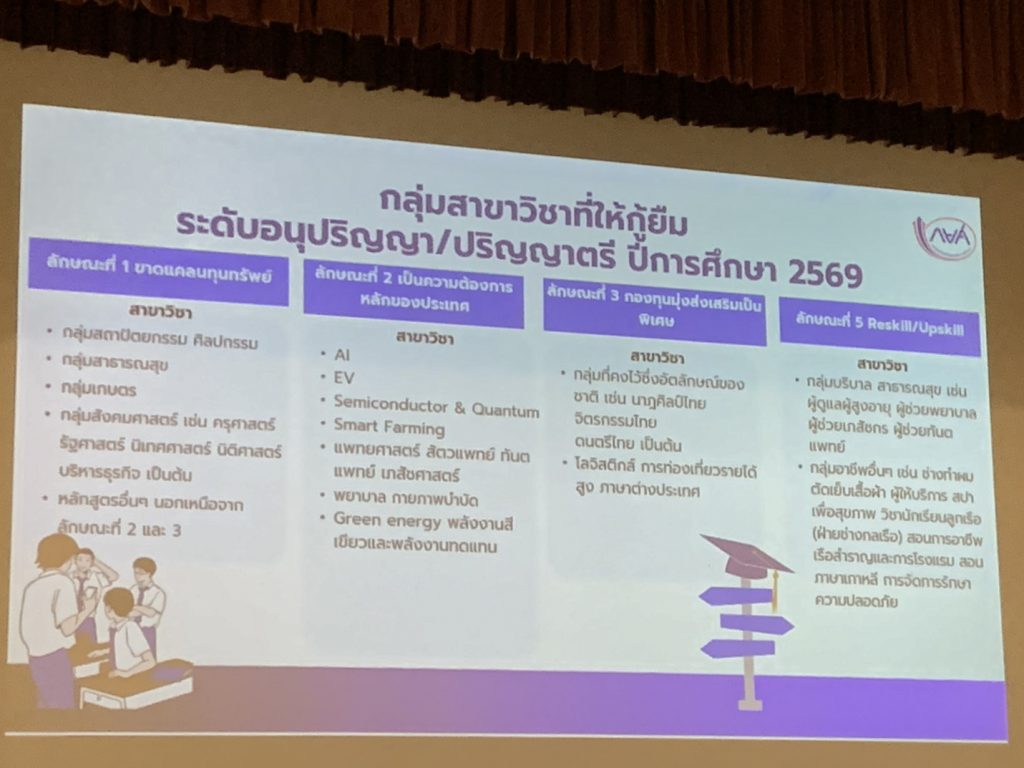 การประชุมในครั้งนี้ เพื่อสร้างความรู้ความเข้าใจเกี่ยวกับการพิจารณาจัดสรรวงเงินกู้ยืมภายใต้งบประมาณที่มีอยู่อย่างจำกัด รวมถึงการพิจารณาคุณสมบัติผู้กู้ และการเข้าใช้งานระบบเพื่อดำเนินการกู้ยืม ในปีการศึกษา 2569 โดยมหาวิทยาลัยราชภัฏลำปางได้กำหนดให้นักศึกษาผู้กู้รายเก่า ดำเนินการส่งเอกสารเตรียมความพร้อมการกู้ยืมเงินภาคเรียนที่ 1/2569 ระหว่างวันที่ 22 – 24 เมษายน 2569 นี้