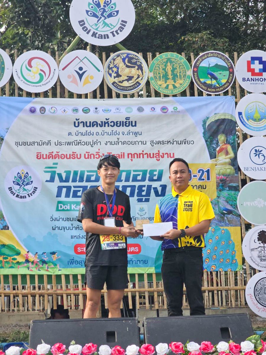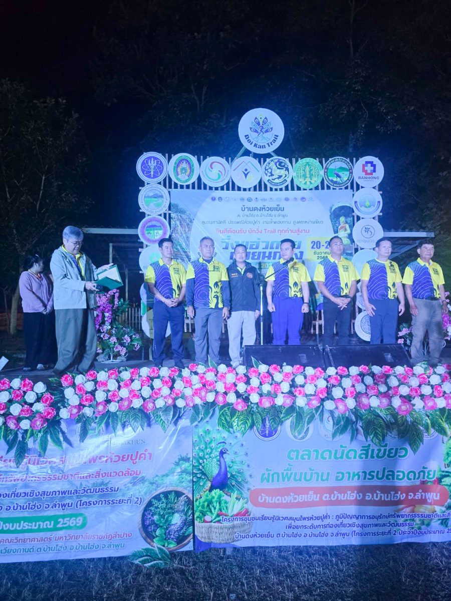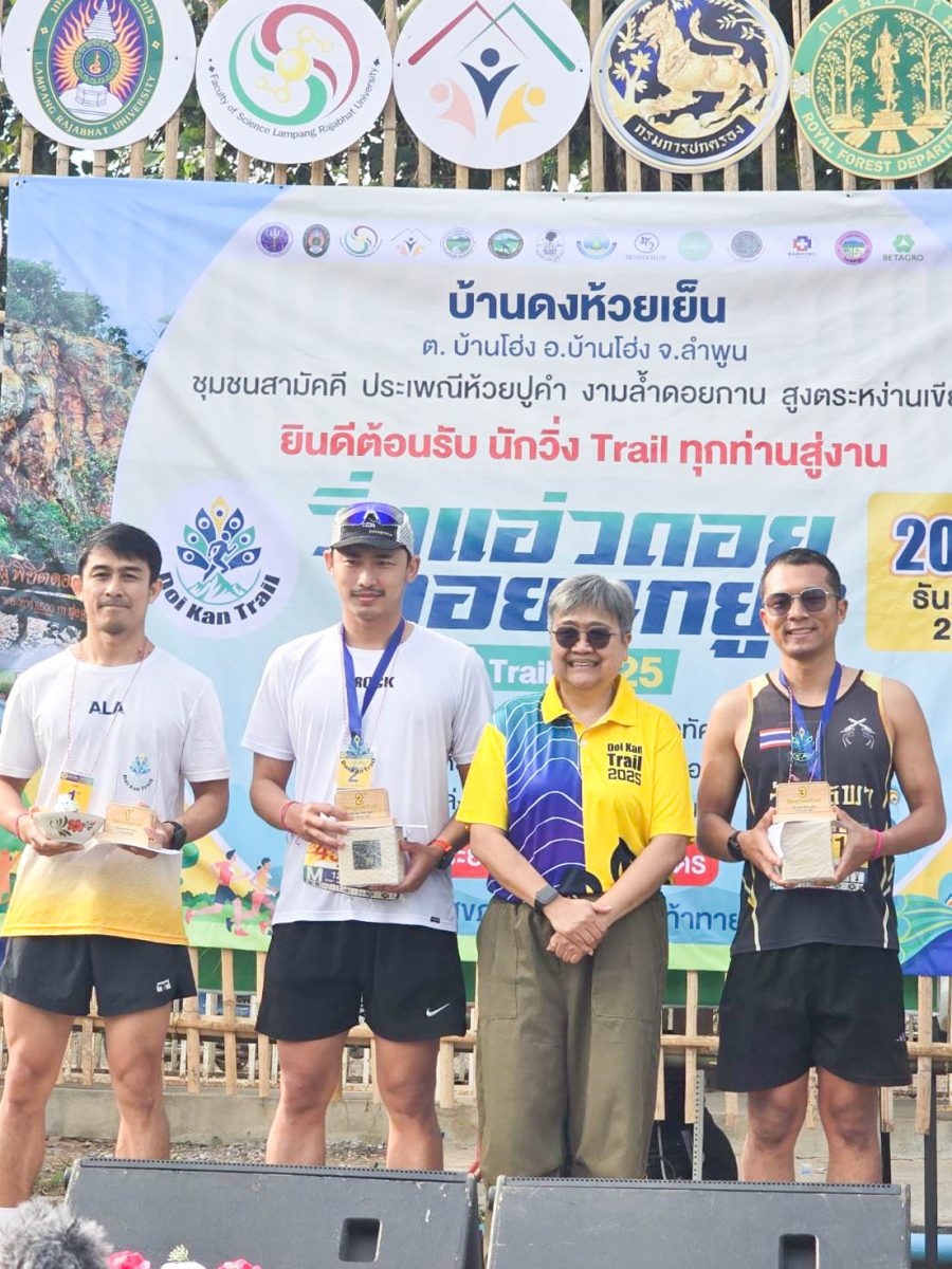ผศ.สุวรรณี จันทร์ตา รองอธิการบดีฝ่ายวิชาการ กล่าวรายงานการจัดกิจกรรมวิ่ง Doi Kan Trail 2025 ระยะทางการวิ่ง 9 กิโลเมตร ซึ่งมีองค์กรที่สนับสนุนกิจกรรม 25 องค์กร เมื่อวันที่ 21 ธันวาคม 2568 ณ บ้านดงห้วยเย็น ตำบลบ้านโฮ่ง อำเภอบ้านโฮ่ง จังหวัดลำพูน โดยได้รับเกียรติจาก นายจรัล มณีจันสุข นายอำเภอบ้านโฮ่ง เป็นประธานในพิธีเปิดงาน นายจิรวัฒน์ แดนโพธิ์ ปลัดอำเภอบ้านโฮ่ง ว่าที่ ร.ต.ภัคภูมิ เสียงอ่อน นายกเทศมนตรีตำบลบ้านโฮ่ง และ ว่าที่ ร.ต.เกษม จี้ปุ๊ด ปลัดองค์การบริหารส่วนตำบลเวียงกานต์ ร่วมกล่าวต้อนรับ