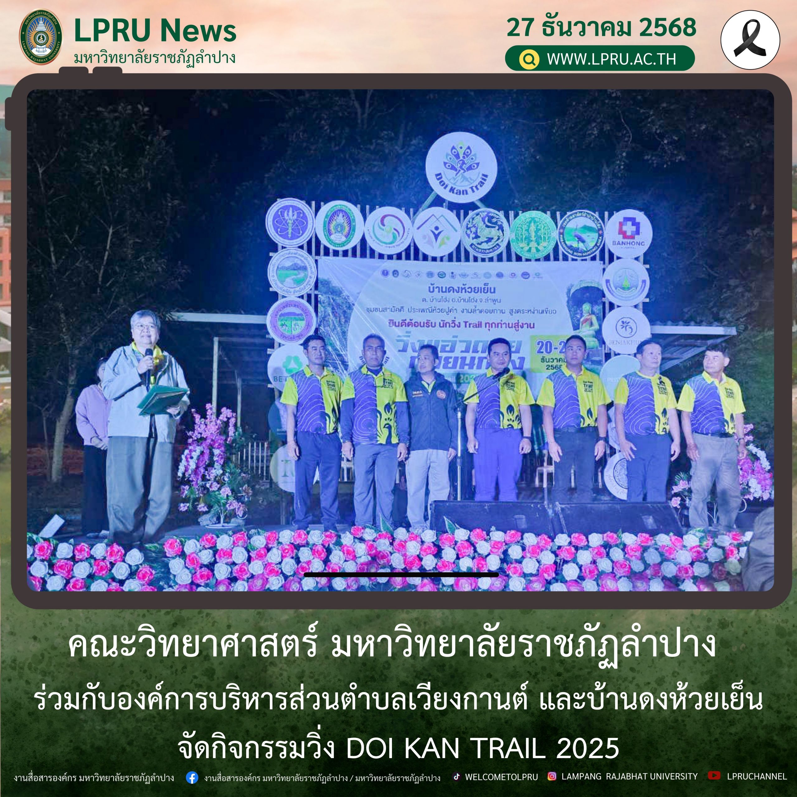 คณะวิทยาศาสตร์ มร.ลป. ร่วมกับองค์การบริหารส่วนตำบลเวียงกานต์ และบ้านดงห้วยเย็น จัดกิจกรรมวิ่ง Doi Kan Trail 2025