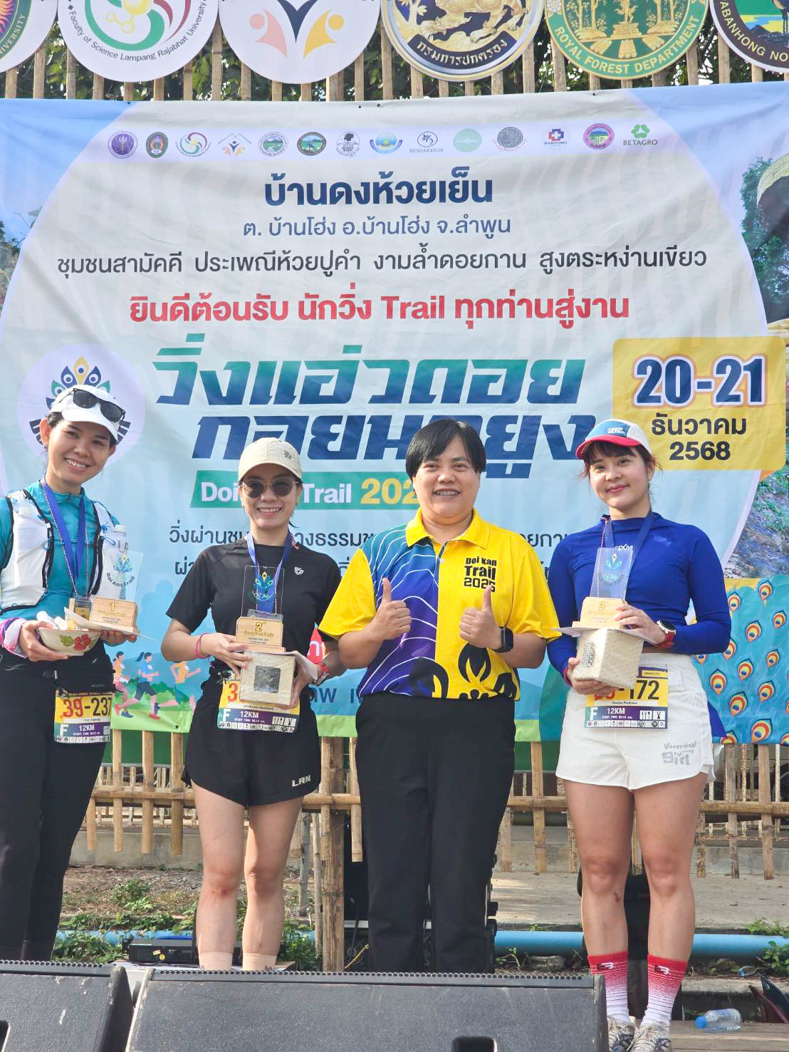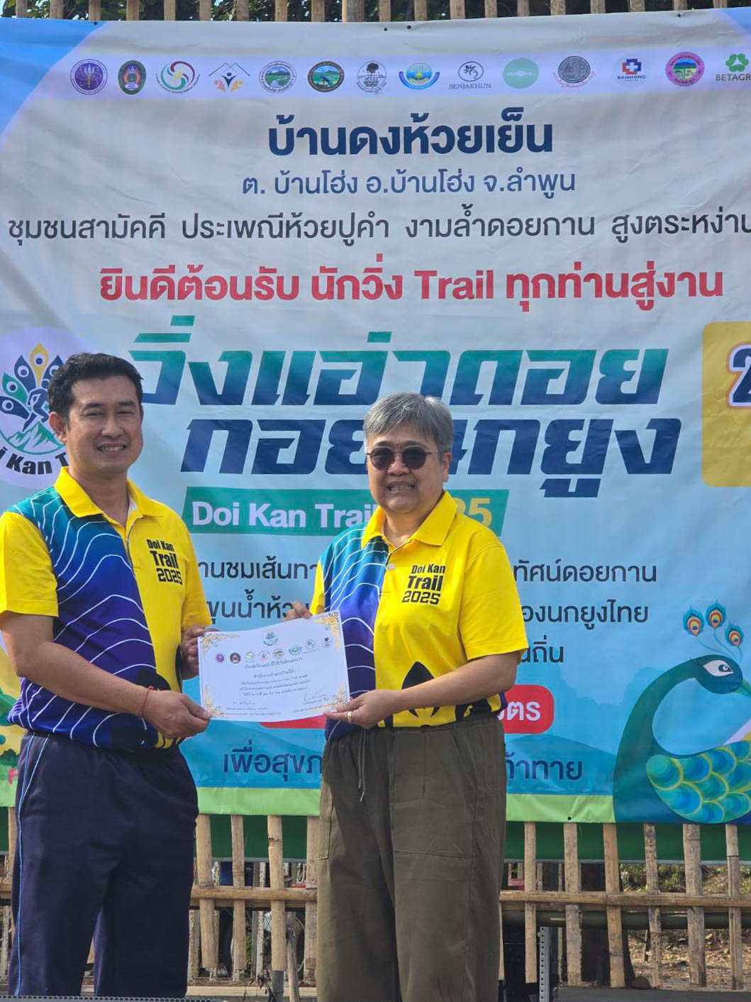 ผศ.สุวรรณี จันทร์ตา รองอธิการบดีฝ่ายวิชาการ กล่าวรายงานการจัดกิจกรรมวิ่ง Doi Kan Trail 2025 ระยะทางการวิ่ง 9 กิโลเมตร ซึ่งมีองค์กรที่สนับสนุนกิจกรรม 25 องค์กร เมื่อวันที่ 21 ธันวาคม 2568 ณ บ้านดงห้วยเย็น ตำบลบ้านโฮ่ง อำเภอบ้านโฮ่ง จังหวัดลำพูน โดยได้รับเกียรติจาก นายจรัล มณีจันสุข นายอำเภอบ้านโฮ่ง เป็นประธานในพิธีเปิดงาน นายจิรวัฒน์ แดนโพธิ์ ปลัดอำเภอบ้านโฮ่ง ว่าที่ ร.ต.ภัคภูมิ เสียงอ่อน นายกเทศมนตรีตำบลบ้านโฮ่ง และ ว่าที่ ร.ต.เกษม จี้ปุ๊ด ปลัดองค์การบริหารส่วนตำบลเวียงกานต์ ร่วมกล่าวต้อนรับ
