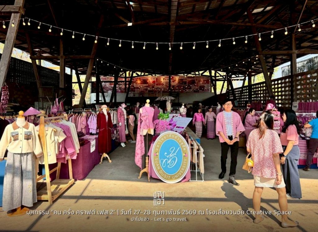 เมื่อวันที่ 27 กุมภาพันธ์ 2569 รศ.วิไลลักษณ์ พรมเสน รองอธิการบดีฝ่ายวิจัยและวิชาการต่างประเทศ พร้อมด้วย รศ.ธิติมา คุณยศยิ่ง ผู้อำนวยการสถาบันวิจัยและพัฒนา มหาวิทยาลัยราชภัฏลำปาง ร่วมพิธีเปิด “คน ครั่ง คราฟต์ มหกรรมผ้าย้อมสีครั่งลำปาง (ครั่งเฟส) ครั้งที่ 2” และกิจกรรมการเรียนรู้ภายใต้โครงการ WAKE UP SDU LIVING LAB : SDU Learning Space Journey & คน ครั่ง คราฟต์ ครั้งที่ 2 เทศกาลการเรียนรู้ลำปาง 2569 (Learning Fest Lampang 2026 : Wake Up Lampang) ณ โรงเลื่อยวนชัย Creative Space และมหาวิทยาลัยสวนดุสิต ศูนย์การศึกษาลำปาง