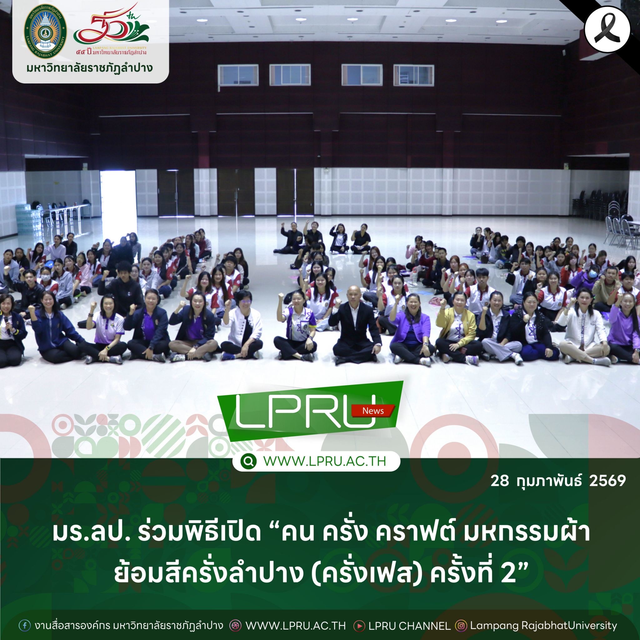 เมื่อวันที่ 26 กุมภาพันธ์ 2569 รศ.ปริตต์ สายสี รองอธิการบดีฝ่ายกิจการนักศึกษา เป็นประธานในพิธีเปิดการอบรมเชิงปฏิบัติการ ภายใต้โครงการ LPRU Social Engineer : ถอดรหัสทักษะวิศวกรสังคม สร้างบัณฑิตนวัตกรสู่ท้องถิ่นจังหวัดลำปาง ณ ห้องประชุมนารีอินนนท์ อาคารบริการวิชาการ มหาวิทยาลัยราชภัฏลำปาง