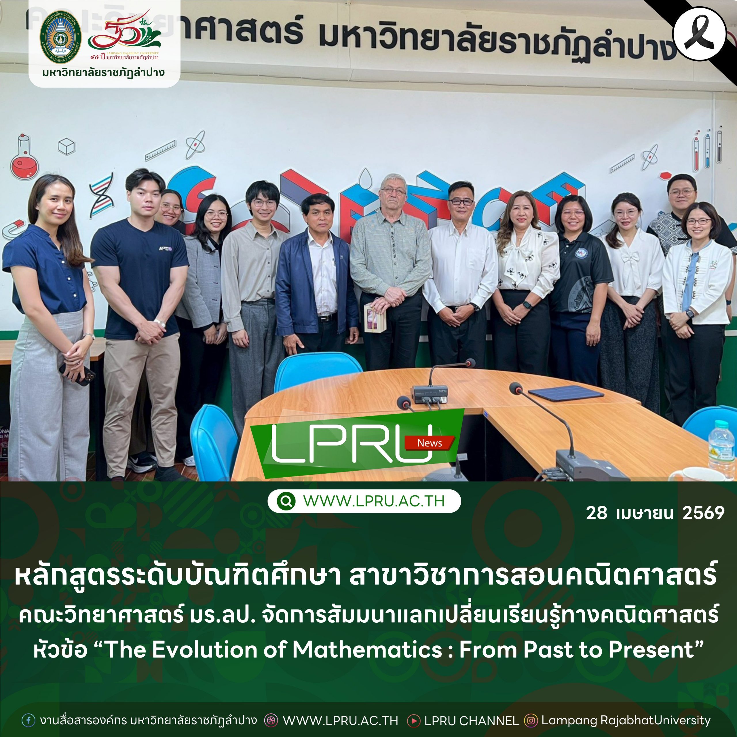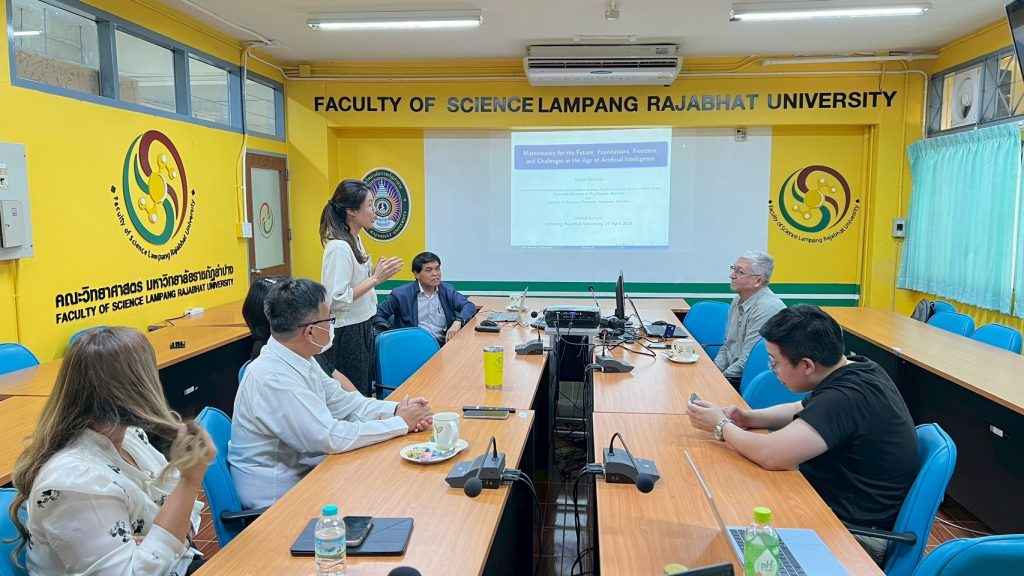 เมื่อวันที่ 27 เมษายน 2569 สาขาวิชาคณิตศาสตร์ คณะวิทยาศาสตร์ มหาวิทยาลัยราชภัฏลำปาง จัดการสัมมนาแลกเปลี่ยนเรียนรู้ทางคณิตศาสตร์ หัวข้อ “The Evolution of Mathematics : From Past to Present” ณ ห้อง 23112 คณะวิทยาศาสตร์ มหาวิทยาลัยราชภัฏลำปาง โดยมีคณาจารย์สาขาวิชาคณิตศาสตร์ พร้อมด้วยนักศึกษาระดับบัณฑิตศึกษา และผู้สนใจเข้าร่วมกิจกรรม 10 คน โดยมี ผศ.พิภพ นราแก้ว คณบดีคณะวิทยาศาสตร์ เป็นประธานพิธีเปิดพร้อมทั้งกล่าวต้อนรับวิทยากรและผู้เข้าร่วมการสัมมนา
