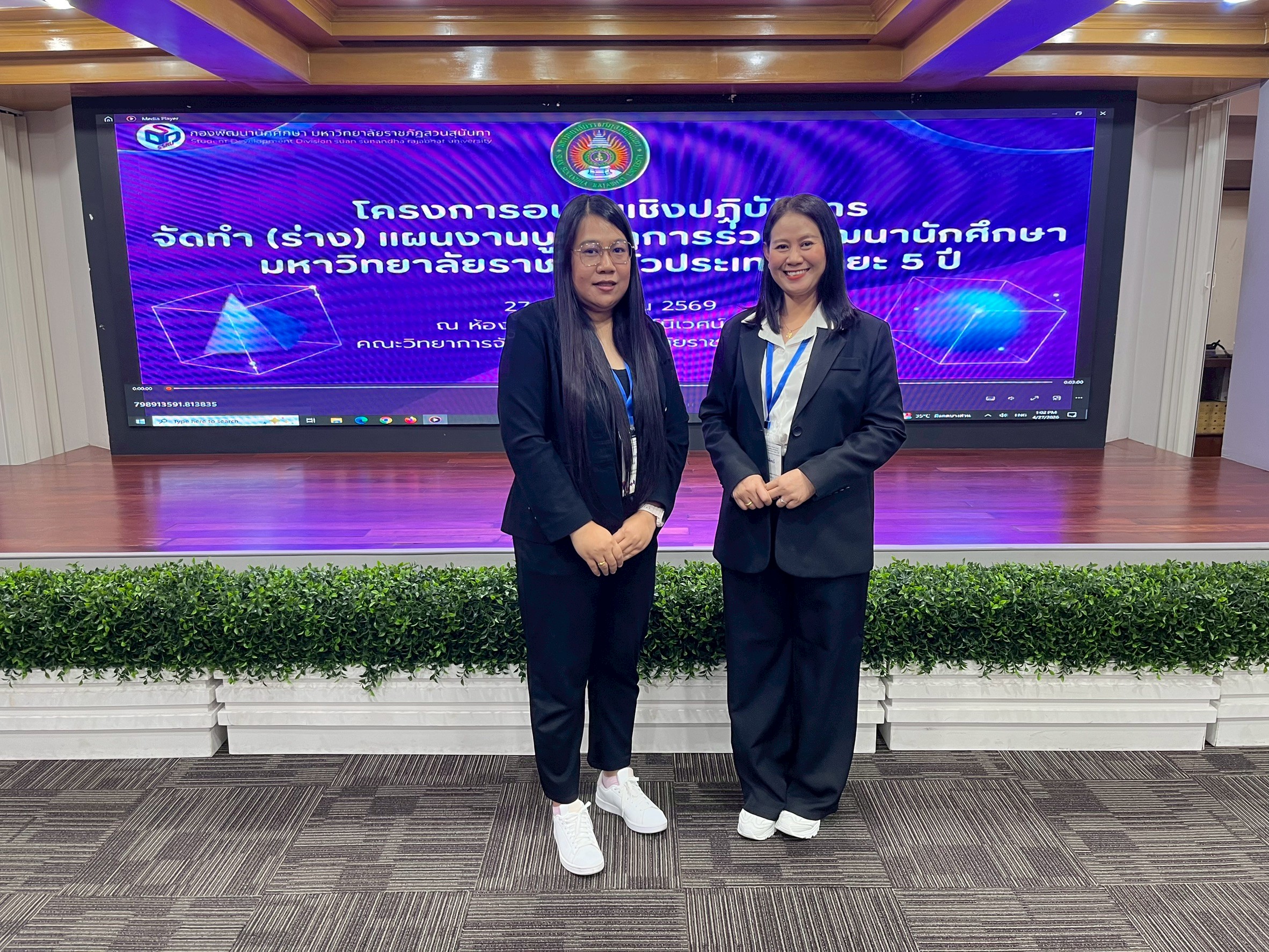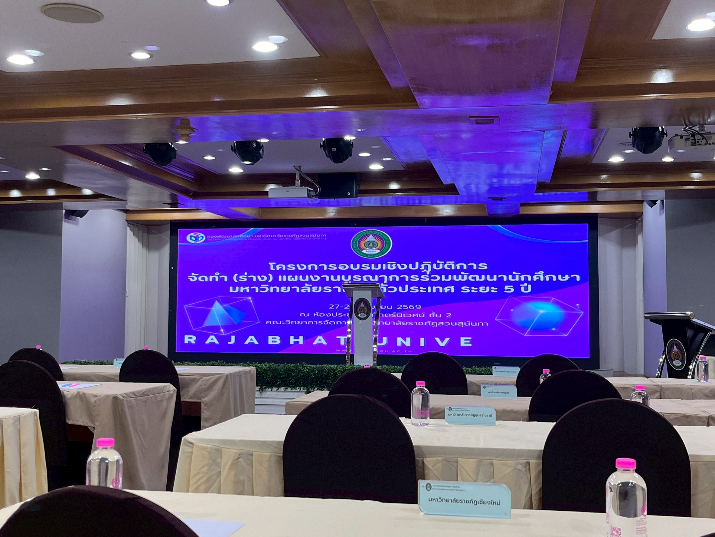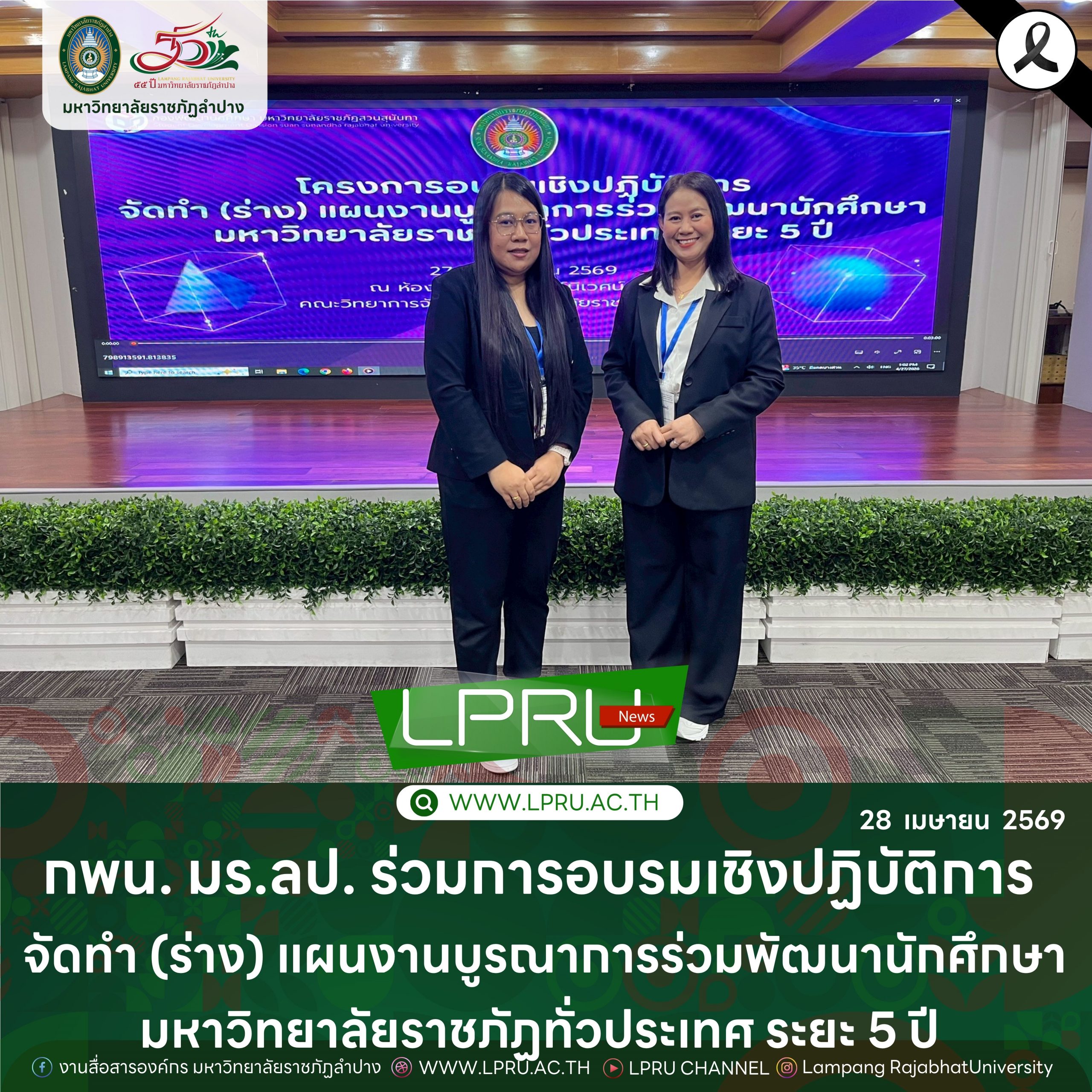เมื่อวันที่ 27 เมษายน 2569 น.ส.สุพัทธ์ ขัดผาบ รักษาการในตำแหน่งผู้อำนวยการกองพัฒนานักศึกษา มหาวิทยาลัยราชภัฏลำปาง พร้อมด้วย น.ส.ชุติมา ฤาชัย นักแนะแนวการศึกษาและอาชีพ ร่วมการอบรมเชิงปฏิบัติการ จัดทำ (ร่าง) แผนงานบูรณาการร่วมพัฒนานักศึกษามหาวิทยาลัยราชภัฏทั่วประเทศ ระยะ 5 ปี ณ ห้องประชุมสุวพักตร์นิเวศน์ อาคารคณะวิทยาการจัดการ มหาวิทยาลัยราชภัฏสวนสุนันทา โดย ผศ.ดร.สมศักดิ์ คล้ายสังข์ รองอธิการบดีฝ่ายกิจการนักศึกษา เป็นประธานในพิธีเปิด