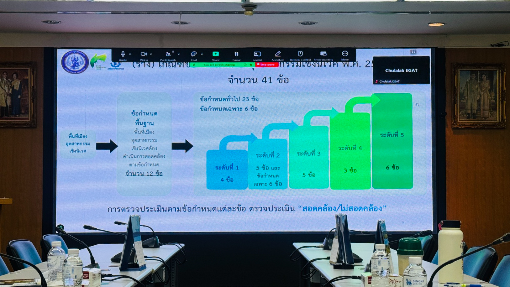 การประชุมในครั้งนี้ ทีมคณะผู้ตรวจประเมินภายในจากภาครัฐ ภาคการศึกษา รัฐวิสาหกิจ ร่วมเป็นผู้ตรวจประเมิน ซึ่งมีผู้แทนจากกรมโรงงานอุตสาหกรรม เข้าร่วมประชุมฯ ผ่านระบบ Zoom Meeting โดยสรุปผลการตรวจประเมินภายในจากคณะผู้ตรวจประเมินภายในฯ มีความเห็นว่าข้อมูลสอดคล้องตามข้อกำหนดเมืองอุตสาหกรรมเชิงนิเวศ ฉบับปรับปรุง ปี พ.ศ. 2565 และให้เมืองอุตสาหกรรมเชิงนิเวศจังหวัดลำปางขอรับการตรวจประเมิน ด้วยกระบวนการตรวจประเมินภายนอก (External Audit) เพื่อให้เข้าสู่กระบวนการรับรองเป็นเมืองอุตสาหกรรมเชิงนิเวศ ระดับที่ 1 ของการมีส่วนร่วม (Engagement) ต่อไป พร้อมกันนี้ได้ลงพื้นที่ตรวจเยี่ยม โครงการจัดการขยะอินทรีย์ด้วยหนอนแมลงทหารเสือ ณ ศูนย์ศึกษาและพัฒนาตามหลักปรัชญาเศรษฐกิจพอเพียง กฟผ.แม่เมาะด้วย