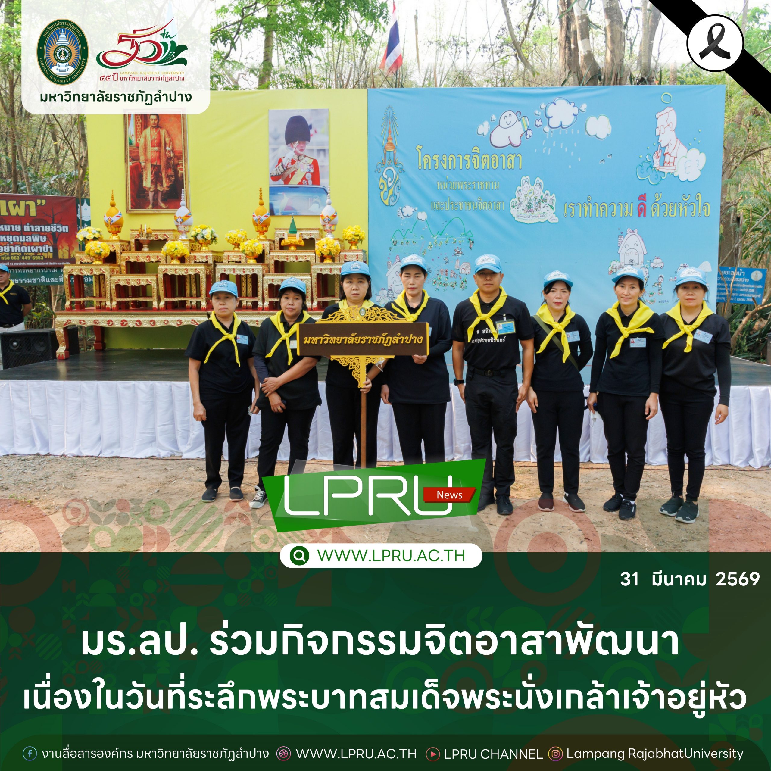 เมื่อวันที่ 31 มีนาคม 2569 ว่าที่ร้อยเอก เอกนรินทร์ เสาสีนาด นักวิชาการศึกษา สังกัดงานบริการและสวัสดิการนักศึกษา กองพัฒนานักศึกษา มหาวิทยาลัยราชภัฏลำปาง นำสมาชิกจิตอาสาพระราชทานสังกัดมหาวิทยาลัยราชภัฏลำปาง ร่วมกิจกรรมจิตอาสาพัฒนา เนื่องในวันคล้ายวันพระบรมราชสมภพ พระบาทสมเด็จพระนั่งเกล้าเจ้าอยู่หัว รัชกาลที่ 3 โดยมีนายวิวัฒน์ อินทร์ไทยวงศ์ ผู้ว่าราชการจังหวัดลำปาง เป็นประธานในพิธี และมีจิตอาสา 904 จิตอาสาจังหวัดลำปาง พร้อมด้วย ประชาชนจิตอาสาในพื้นที่ เข้าร่วมกิจกรรม ณ ป่าชุมชนบ้านต้นต้อง ตำบลพิชัย อำเภอเมือง จังหวัดลำปาง