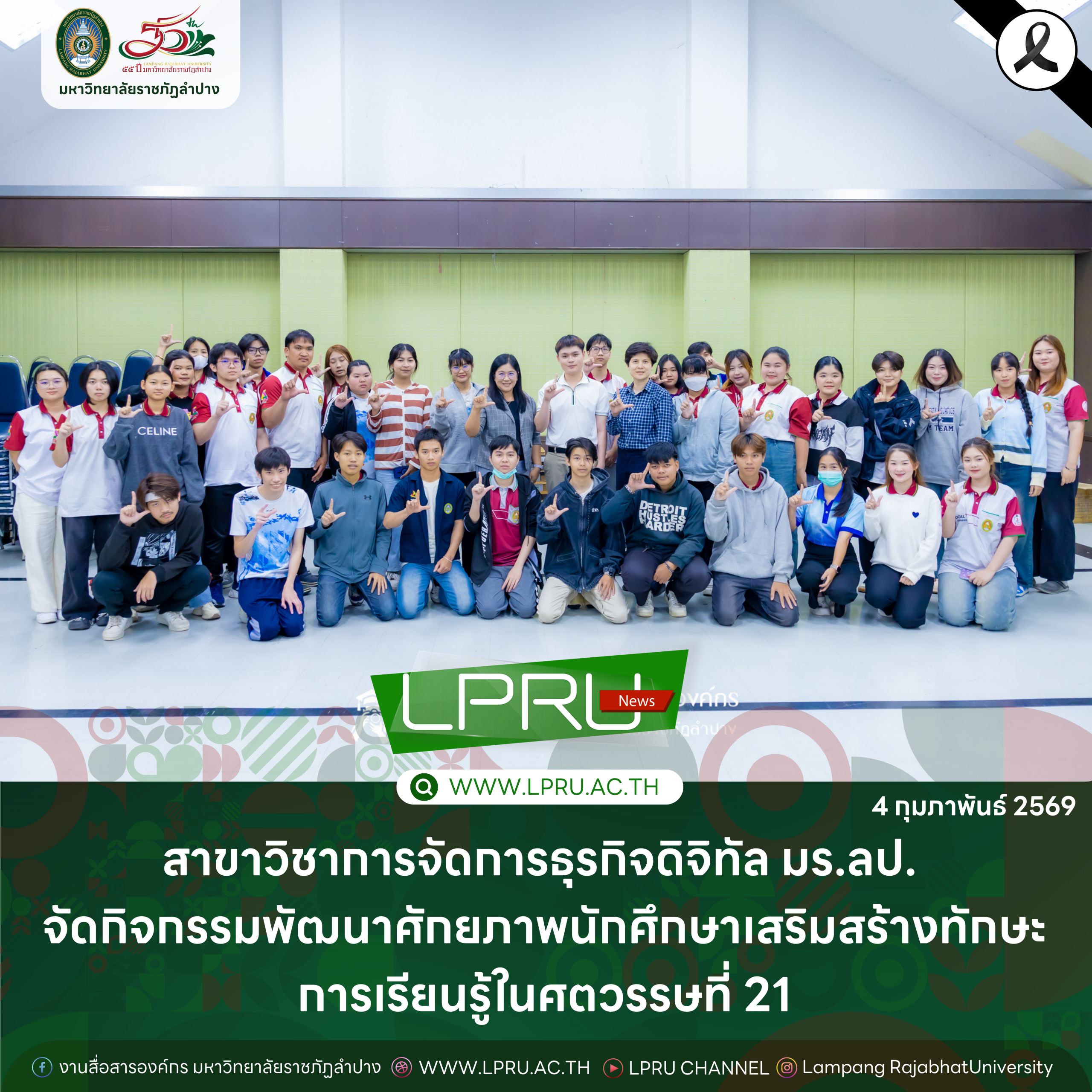 สาขาวิชาการจัดการธุรกิจดิจิทัล มร.ลป. จัดกิจกรรมพัฒนาศักยภาพนักศึกษาเสริมสร้างทักษะการเรียนรู้ในศตวรรษที่ 21