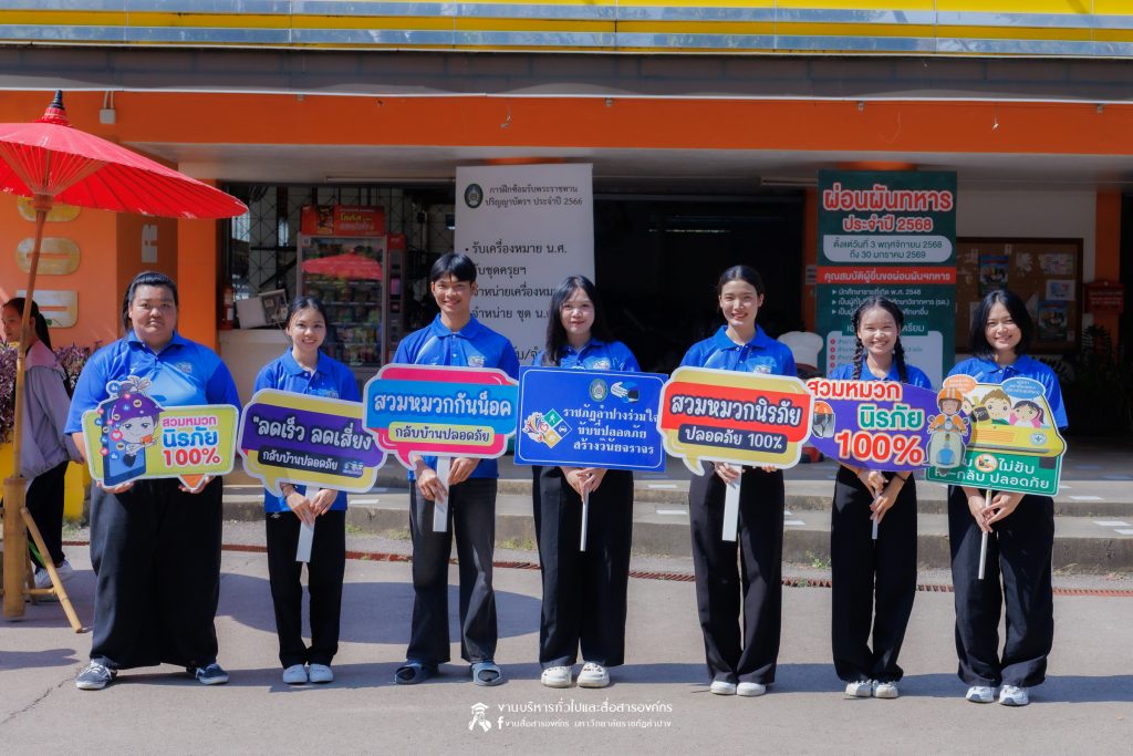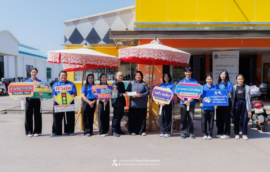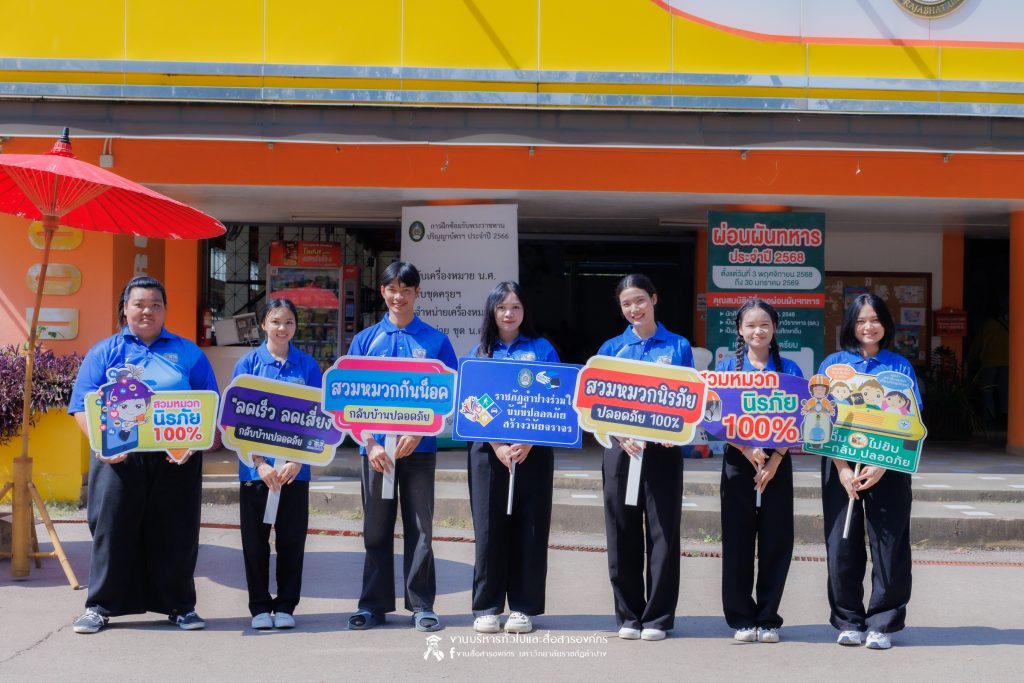 เมื่อวันที่ 22 มกราคม 2569 รศ.ดร.ปริเยศ สิทธิสรวง รองอธิการบดีฝ่ายบริหาร พร้อมด้วย น.ส.ธิดารัตน์ ไชยยาสืบ เจ้าหน้าที่บริหารงานทั่วไป ชำนาญการ ปฏิบัติหน้าที่ในตำแหน่งหัวหน้างานบริหารทั่วไป สำนักงานผู้อำนวยการสำนักศิลปะและวัฒนธรรม นำนักศึกษาชมรมถนนปลอดภัยมหาวิทยาลัยราชภัฏลำปาง จัดกิจกรรมรณรงค์การสวมหมวกนิรภัยในสถานศึกษา ณ บริเวณด้านหน้าโรงอาหารทิพย์ธัญญา มหาวิทยาลัยราชภัฏลำปาง