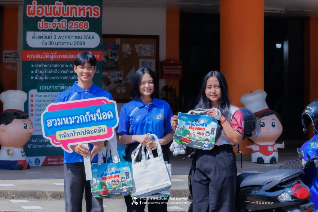 ชมรมถนนปลอดภัยมหาวิทยาลัยราชภัฏลำปาง จัดกิจกรรมรณรงค์การสวมหมวกนิรภัยในสถานศึกษา