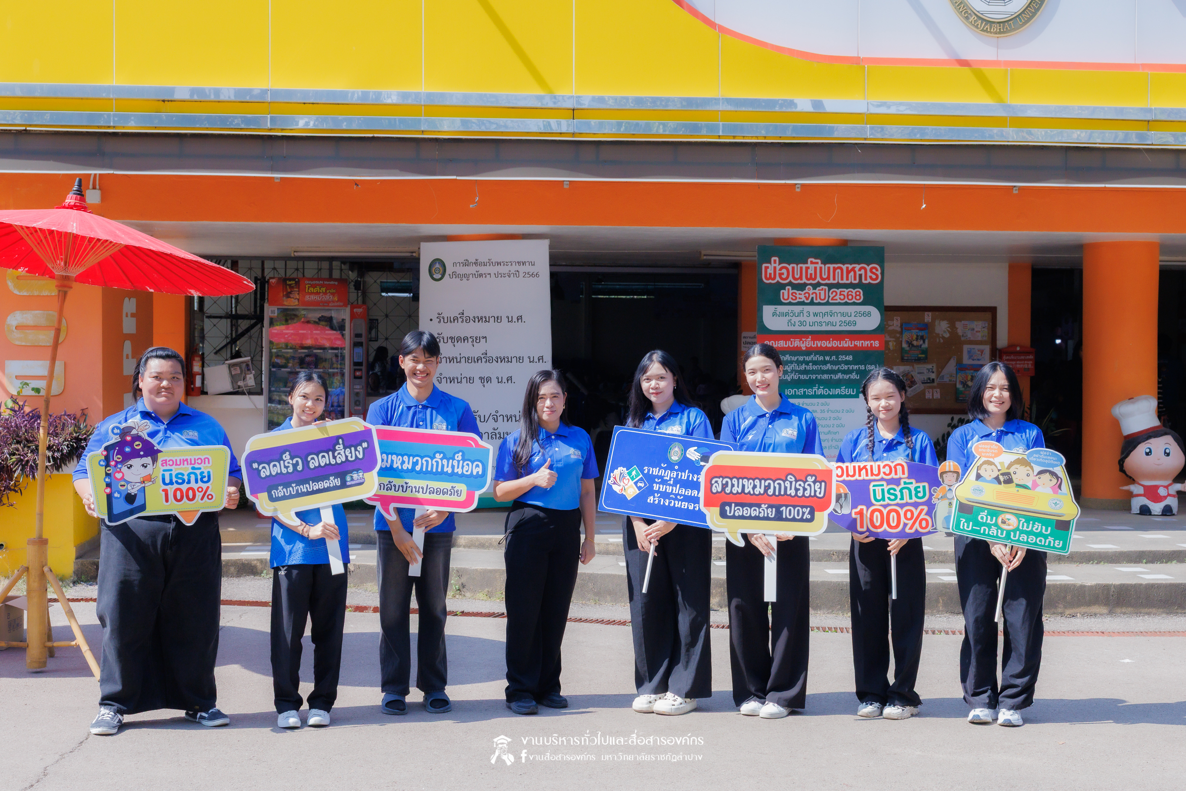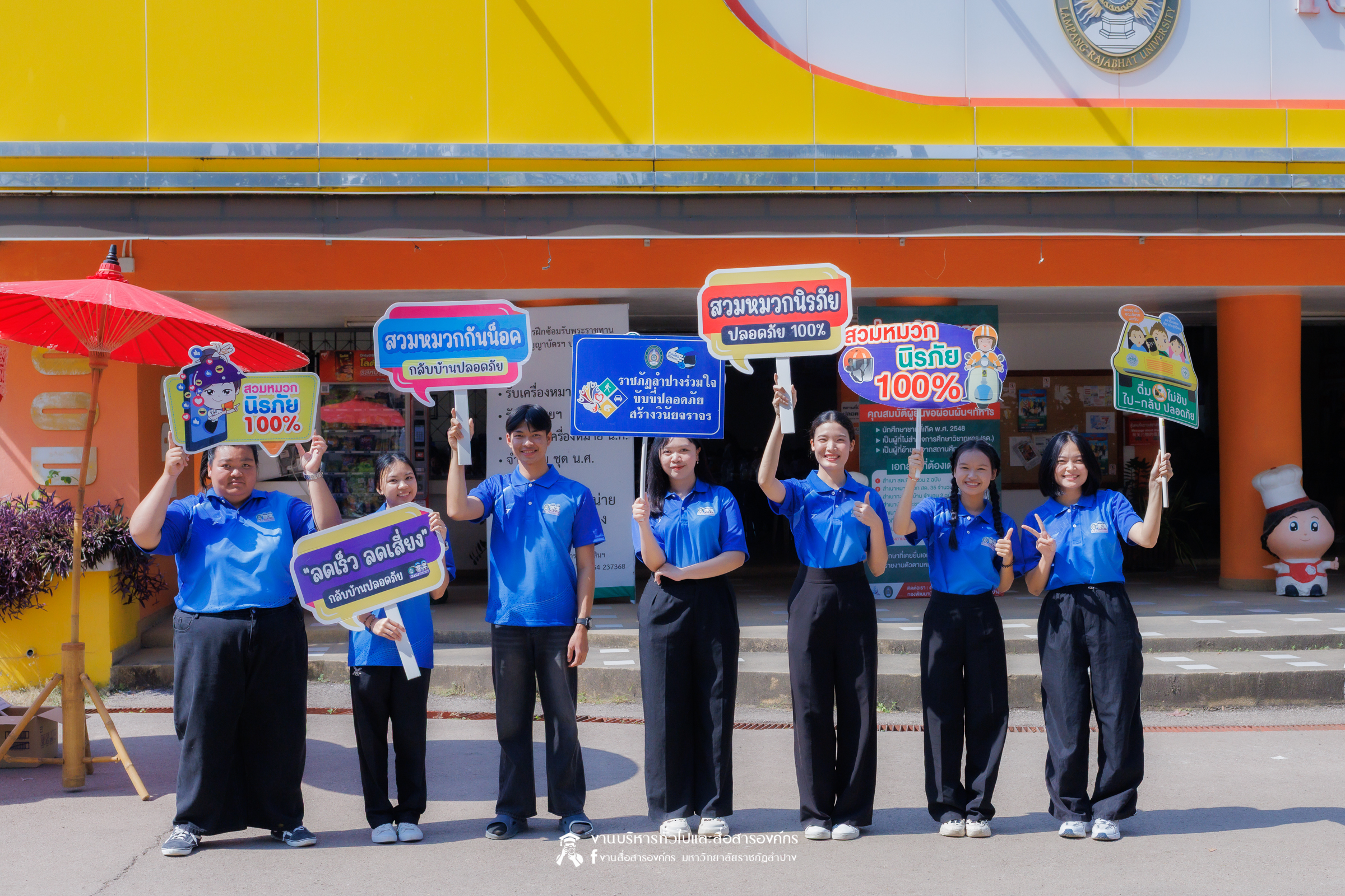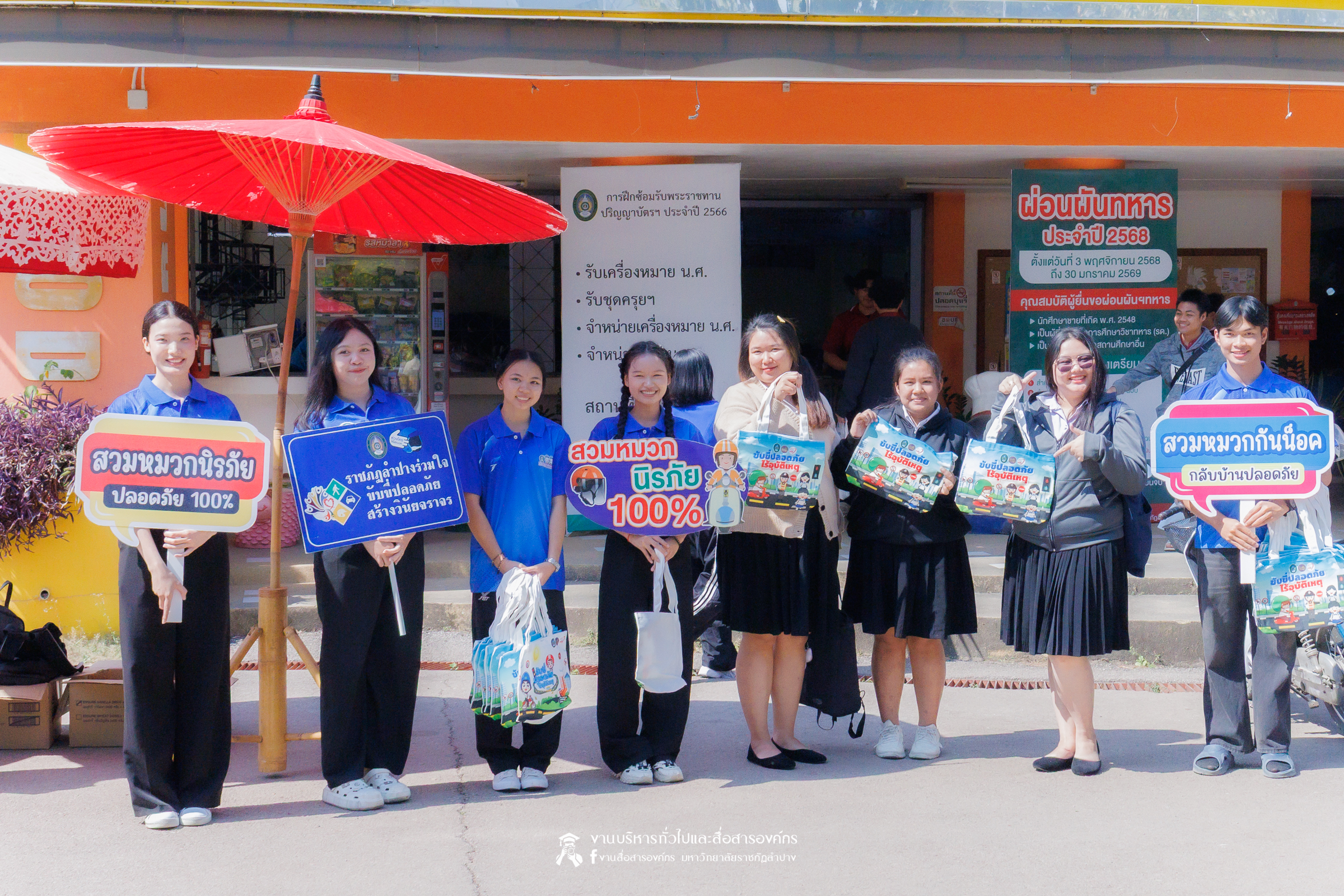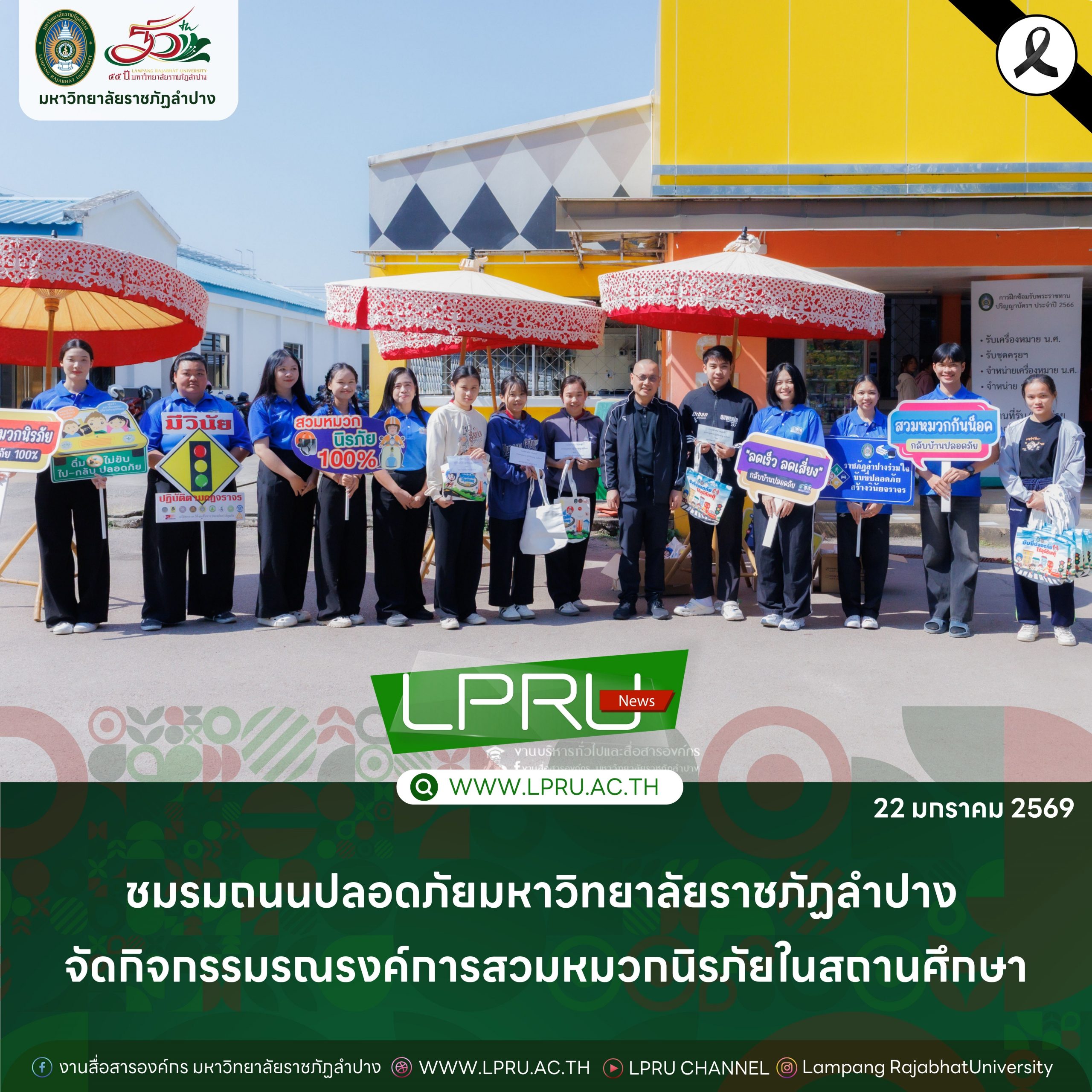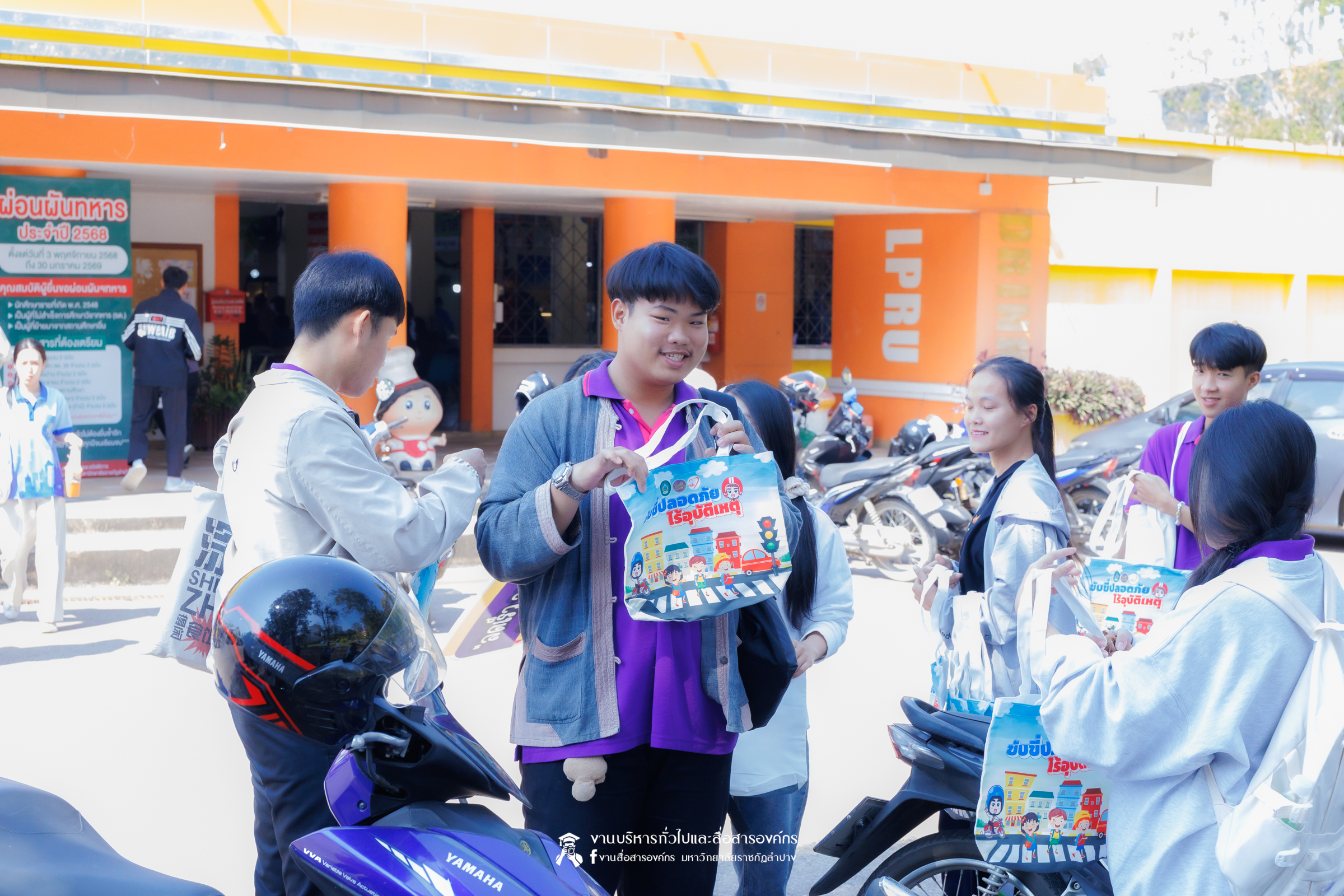 เมื่อวันที่ 22 มกราคม 2569 รศ.ดร.ปริเยศ สิทธิสรวง รองอธิการบดีฝ่ายบริหาร พร้อมด้วย น.ส.ธิดารัตน์ ไชยยาสืบ เจ้าหน้าที่บริหารงานทั่วไป ชำนาญการ ปฏิบัติหน้าที่ในตำแหน่งหัวหน้างานบริหารทั่วไป สำนักงานผู้อำนวยการสำนักศิลปะและวัฒนธรรม นำนักศึกษาชมรมถนนปลอดภัยมหาวิทยาลัยราชภัฏลำปาง จัดกิจกรรมรณรงค์การสวมหมวกนิรภัยในสถานศึกษา ณ บริเวณด้านหน้าโรงอาหารทิพย์ธัญญา มหาวิทยาลัยราชภัฏลำปาง