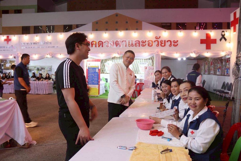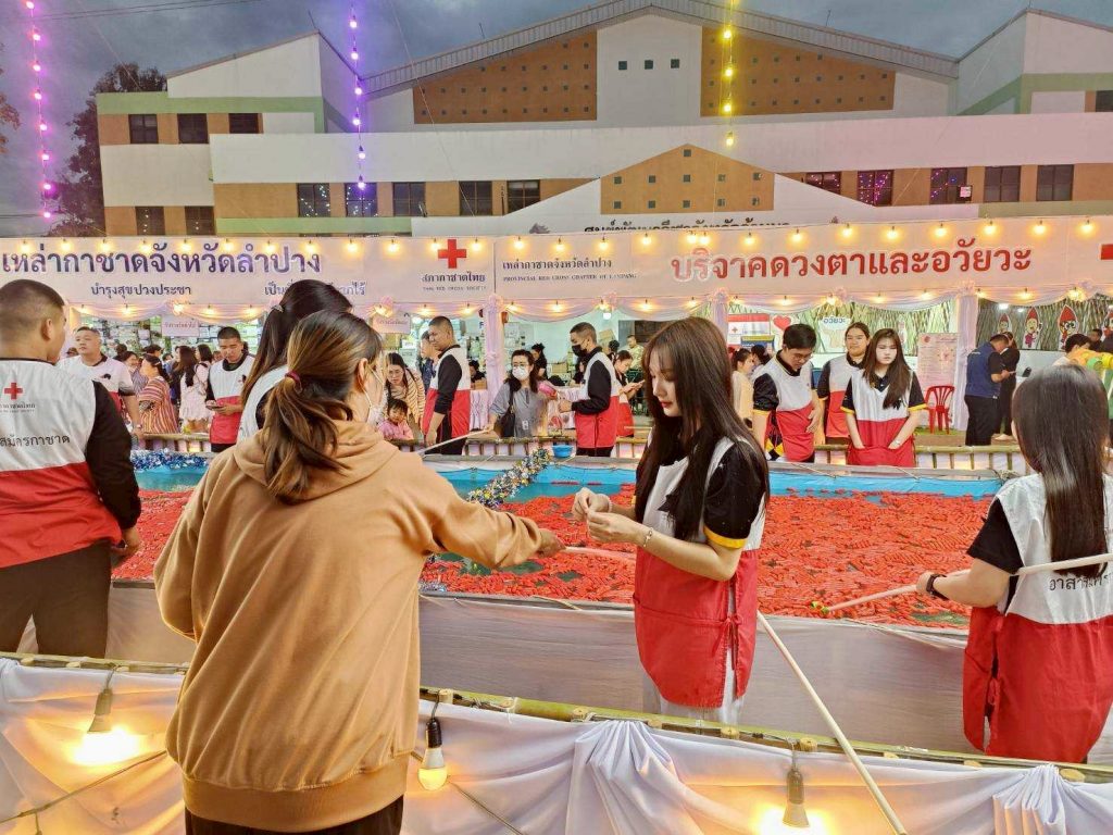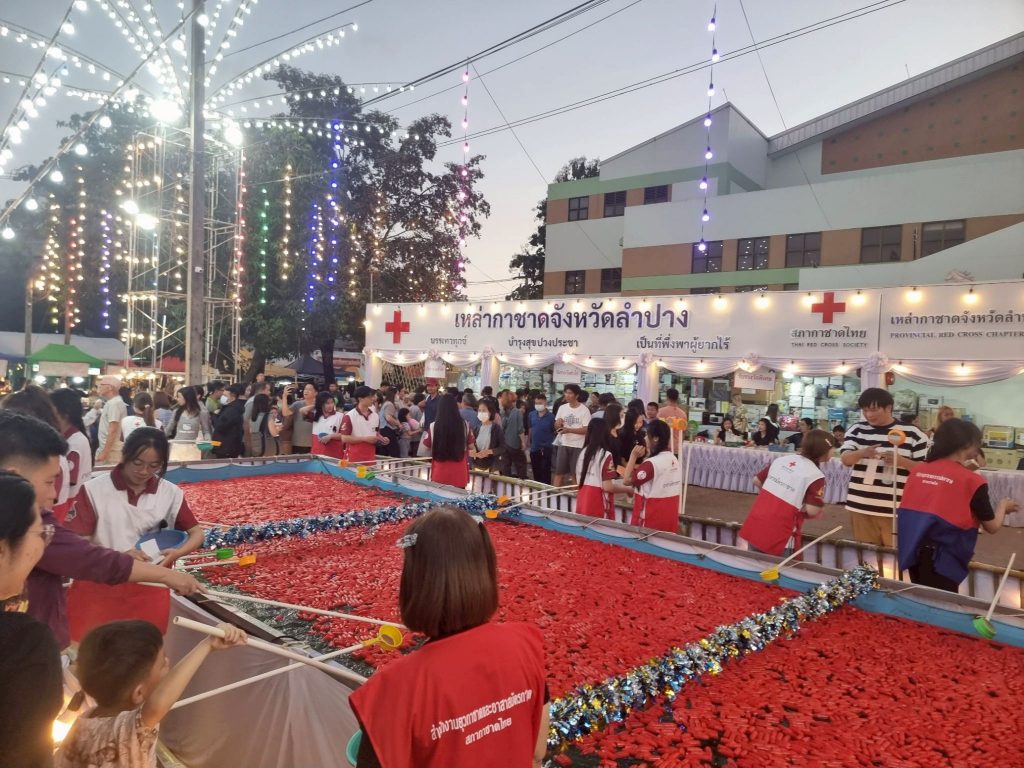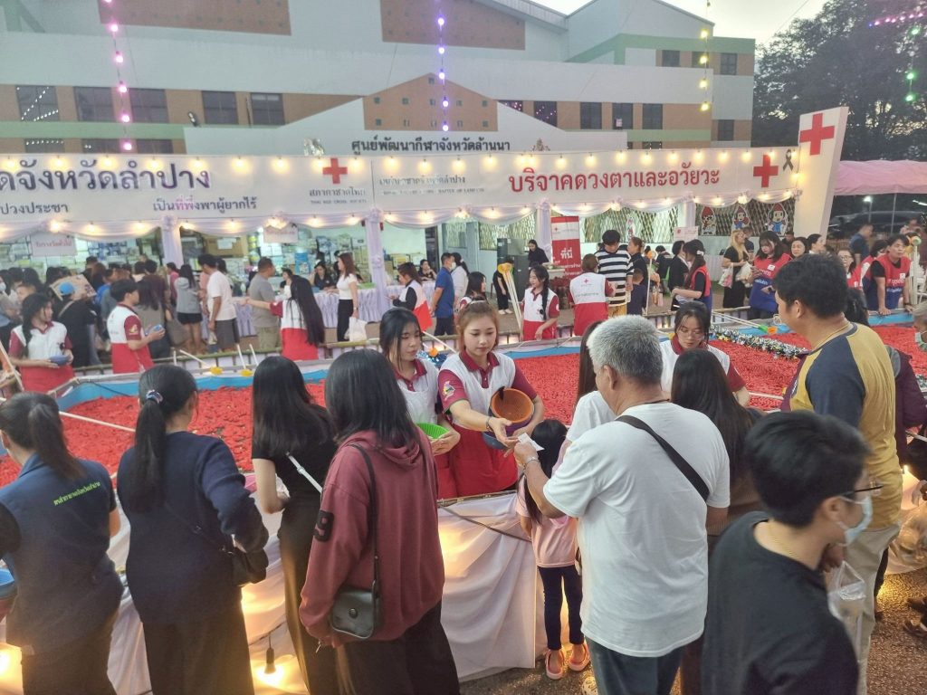 ต่อมาในวันที่ 14 ธันวาคม 2568 นายธีธนิน แสงสวัสดิ์ นักวิชาการศึกษา ปฏิบัติการ สังกัดงานวิชาการและกิจการนักศึกษา คณะวิทยาการจัดการ พร้อมด้วยนักศึกษาคณะวิทยาการจัดการ มหาวิทยาลัยราชภัฏลำปาง จำนวน 14 คน เข้าร่วมกิจกรรมจิตอาสาประจำจุดร้านมัจฉากาชาดในงานเดียวกัน เพื่อร่วมสืบสานภารกิจการกุศลและสร้างประโยชน์ต่อสังคม