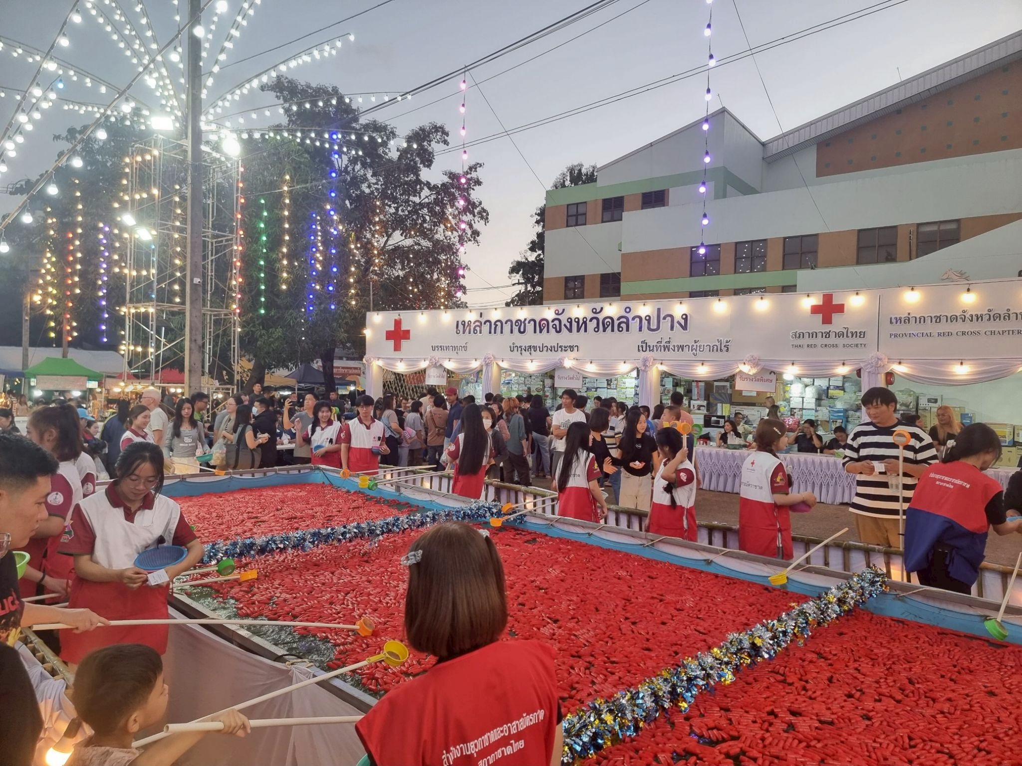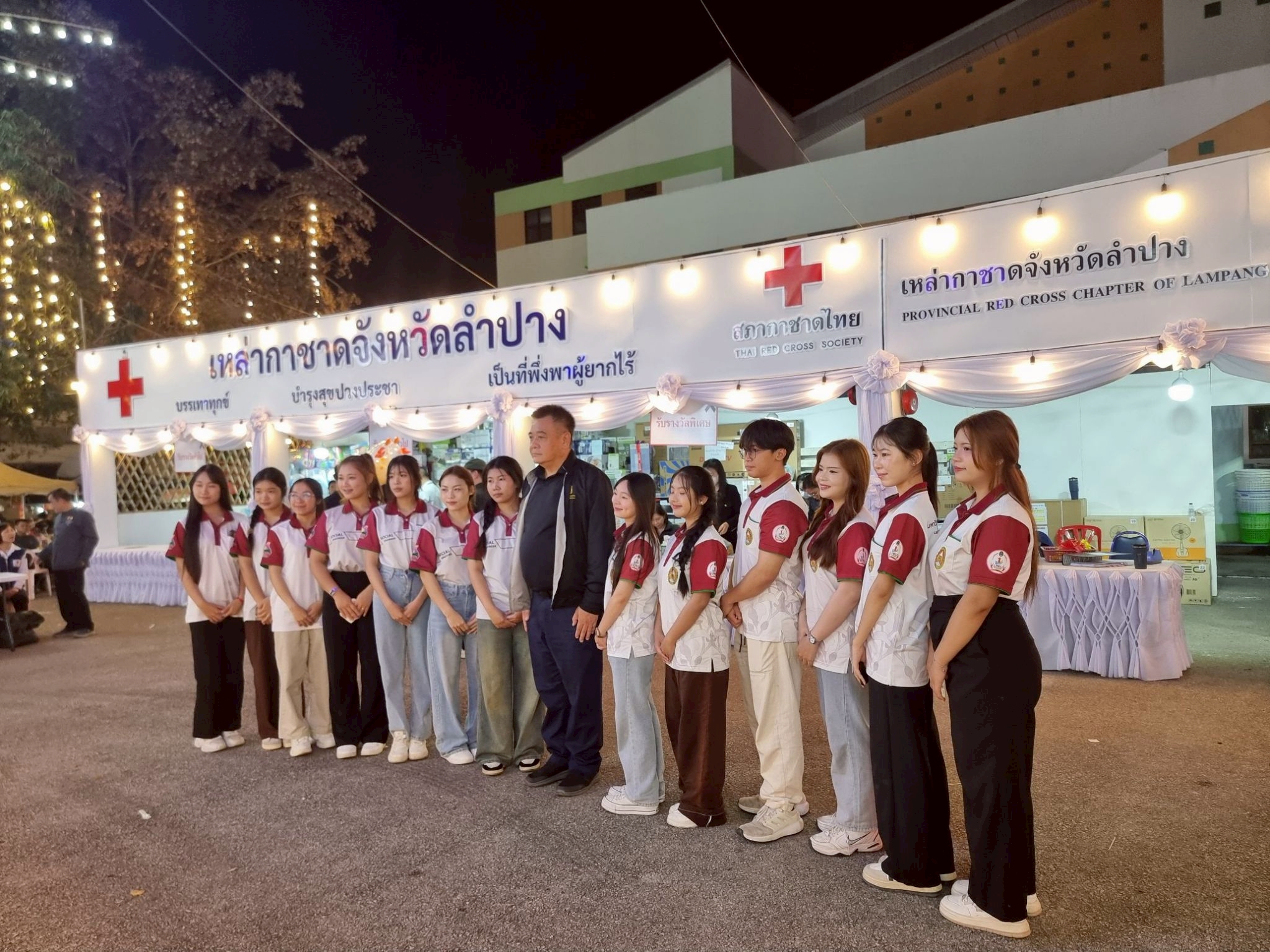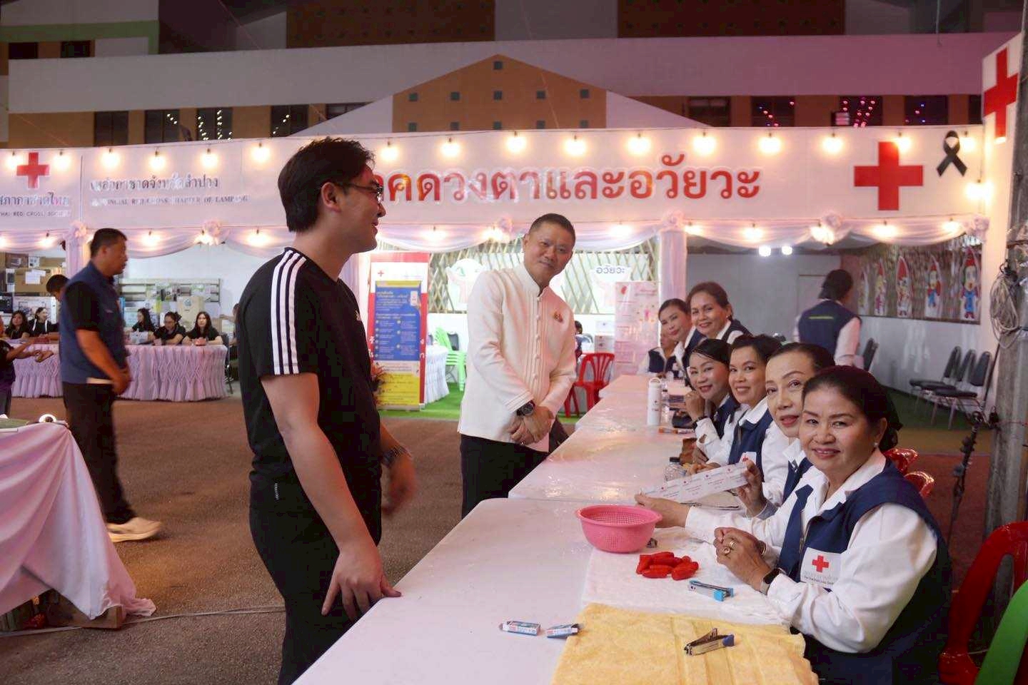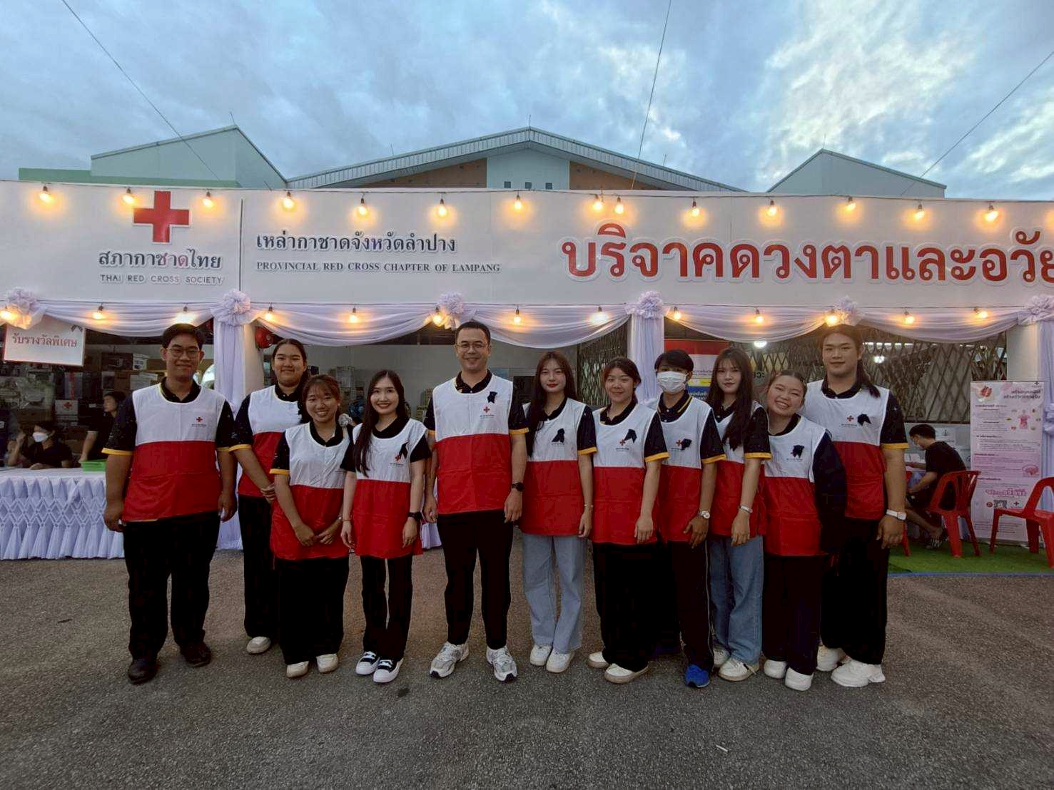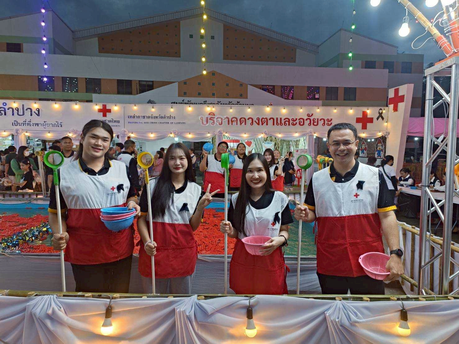 ต่อมาในวันที่ 14 ธันวาคม 2568 นายธีธนิน แสงสวัสดิ์ นักวิชาการศึกษา ปฏิบัติการ สังกัดงานวิชาการและกิจการนักศึกษา คณะวิทยาการจัดการ พร้อมด้วยนักศึกษาคณะวิทยาการจัดการ มหาวิทยาลัยราชภัฏลำปาง จำนวน 14 คน เข้าร่วมกิจกรรมจิตอาสาประจำจุดร้านมัจฉากาชาดในงานเดียวกัน เพื่อร่วมสืบสานภารกิจการกุศลและสร้างประโยชน์ต่อสังคม