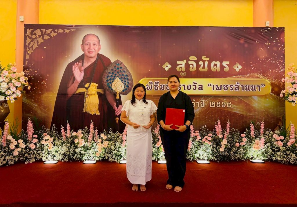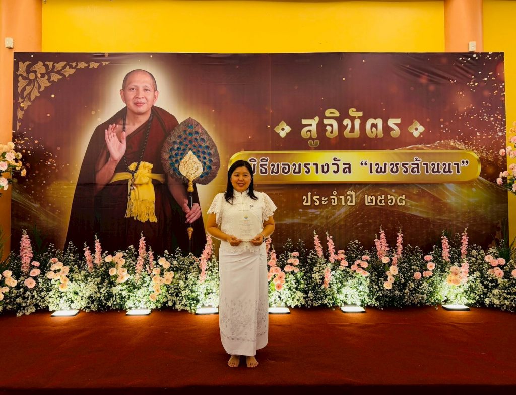 เมื่อวันที่ 11 มกราคม 2569 อ.อัจฉริยา ครุธาโรจน์ ผู้ช่วยอธิการบดีด้านวิเทศสัมพันธ์ เป็นผู้แทนอธิการบดีมหาวิทยาลัยราชภัฏลำปาง ร่วมพิธีมอบรางวัล “เพชรล้านนา” ประจำปี พ.ศ. 2568 พร้อมเข้ารับโล่ประกาศเกียรติคุณ หน่วยงานสนับสนุนการจัดสอบ (ศูนย์สอบ จังหวัดลำปาง) จากพระภาวนารัตนญาณ วิ. (ครูบาอริยชาติ อริยจิตฺโต) ณ วัดแสงแก้วโพธิญาณ อำเภอแม่สรวย จังหวัดเชียงราย