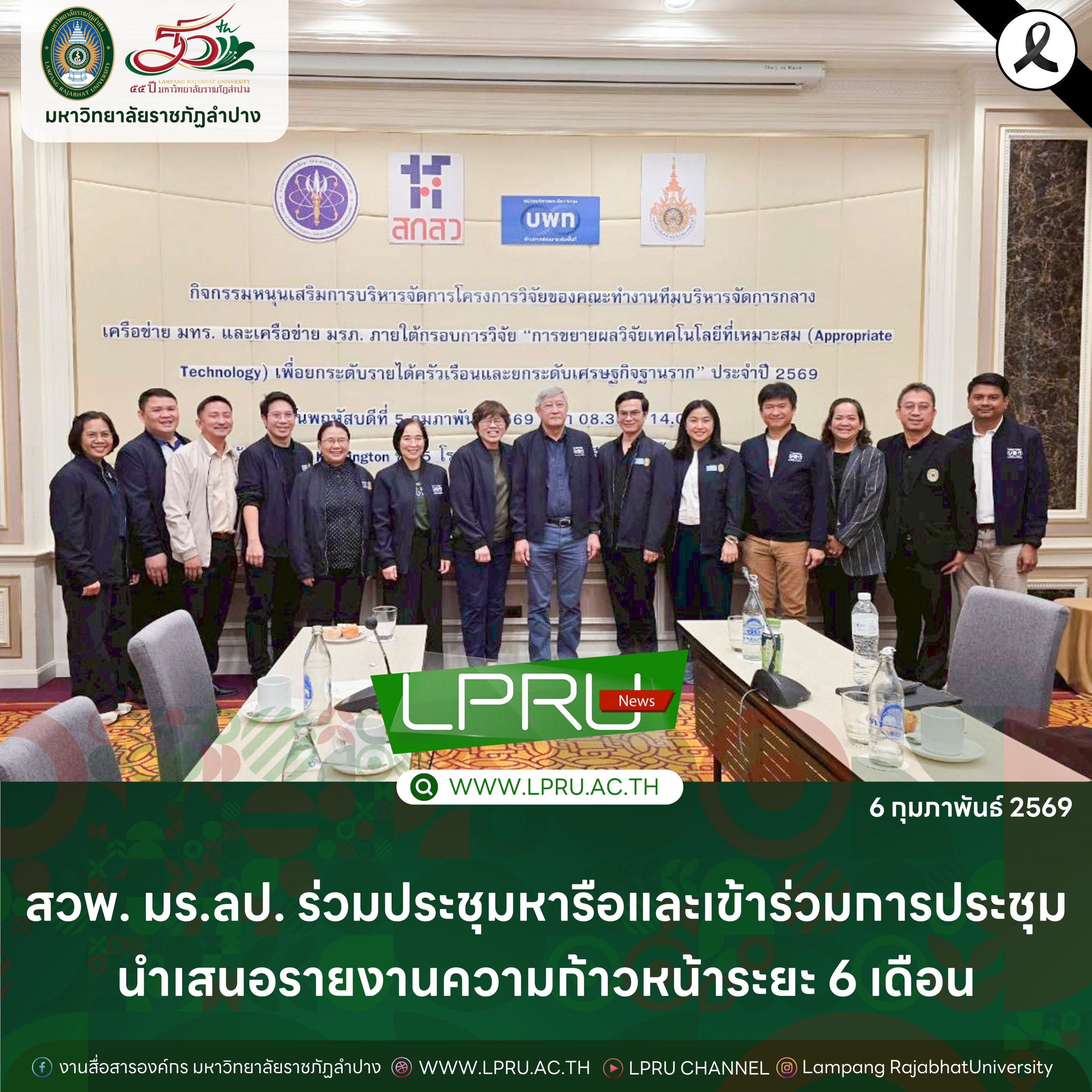 สวพ. มร.ลป. ร่วมประชุมหารือและเข้าร่วมการประชุมนำเสนอรายงานความก้าวหน้าระยะ 6 เดือน Post navigation Previous: สมาชิกจิตอาสาพระราชทาน มร.ลป. พัฒนาภูมิทัศน์ เมื่อวันที่ 6 กุมภาพันธ์ 2569Next: คณะพยาบาลศาสตร์ มร.ลป. จัดพิธีสำเร็จการศึกษา อำลาสถาบัน บัณฑิตพยาบาลศาสตร์ รุ่นที่ 1